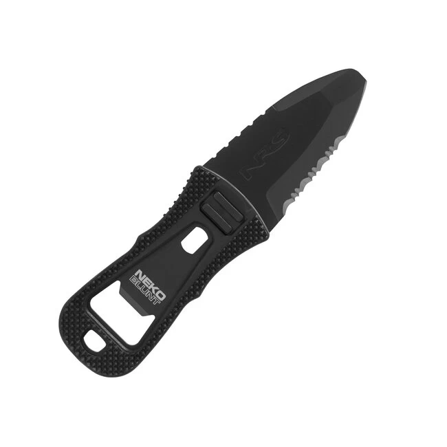 De NRS Neko Blunt Knife is een compact mes welke in รฉรฉn beweging uit de bevestiging gepakt kan worden. Het mes heeft een gekarteld gedeelte voor het snel doorsnijden van touw en banden en een vlijmscherp, glad gedeelte voor het fijnere werk. Het mes heeft een rubberen handvat voor betere grip.ย