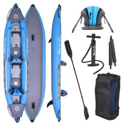 De Z-Ray Tortuga is een zeer comfortabele en compleet uitgeruste opblaaskajak met een dropstitch bodem! Geschikt voor tweepersonen en door zijn stabiliteit zeer toegankelijk voor beginners. Door zijn lengte van 386 cm is de kajak goed op snelheid te brengen waardoor hij uitnodigt om de hele dag op avontuur te gaan. De kajak is gemaakt van versterkt pvc materiaal en mede door zijn dropstitch bodem zeer stijf en vormvast. Ideaal voor gebruik op vlakwater en tevens geschikt om te peddelen op licht stromend water.